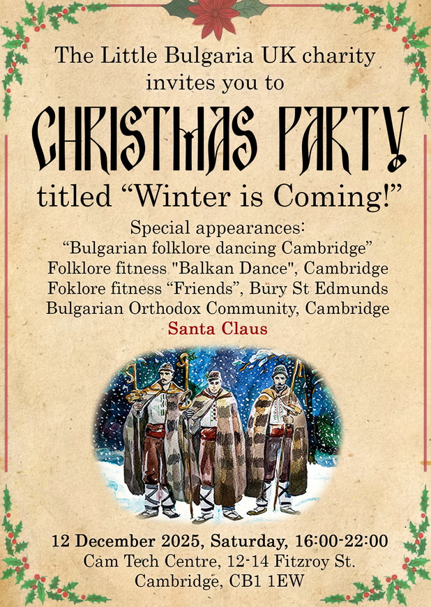 The “Little Bulgaria” charity invites you to the Bulgarian Christmas party “Winter Is Coming!” on Saturday, 5 December. Let’s immerse ourselves together in the spirit of Bulgarian Christmas traditions with plenty of music, dance, and good cheer!
