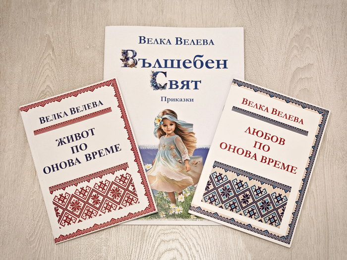 Velka Veleva is the author of the books "Love in Those Times" and "Life in Those Times", which preserve stories of family memory, customs, and the way of life of Bulgarians from the recent past. Her children’s book "Magical World" includes original fairy tales with meaningful lessons and her own hand-drawn illustrations. It is a beloved read for both the youngest readers and those who have grown to rediscover the value of fairy tales.