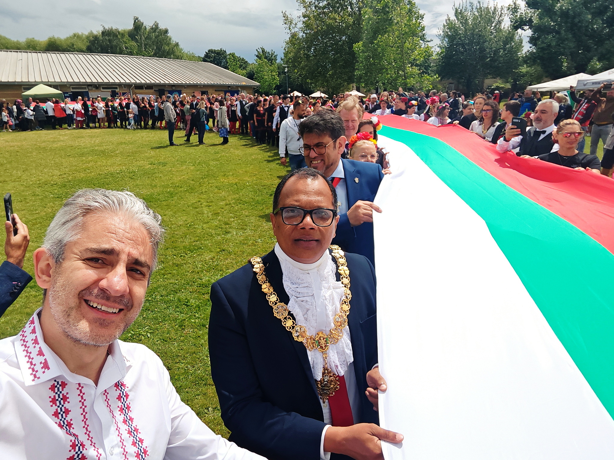 We had discussions with the special guests about the mission of the "Little Bulgaria" Initiative in Cambridgeshire and our long-term goal of establishing a Bulgarian cultural center in Cambridge. This center would serve as a vibrant hub for Bulgarian education, literature, culture, arts, and traditions, helping strengthen community bonds, celebrate our rich heritage, and invite people from other cultures to experience the beauty of Bulgaria. We also discussed our proposal to the former mayor to organize an international intercultural festival in Cambridge in honor of St. George, the patron saint of England, and the national saint of Bulgaria, Portugal, Brazil, Germany, Greece, Catalonia, Georgia, Lithuania, Russia, and other countries. The mayor invited us to a meeting at the Cambridge Guildhall to discuss the needs of the Bulgarian community in Cambridgeshire and the charitable initiatives of the "Little Bulgaria" Initiative. We plan to hold the meeting in September, right after the summer holidays.