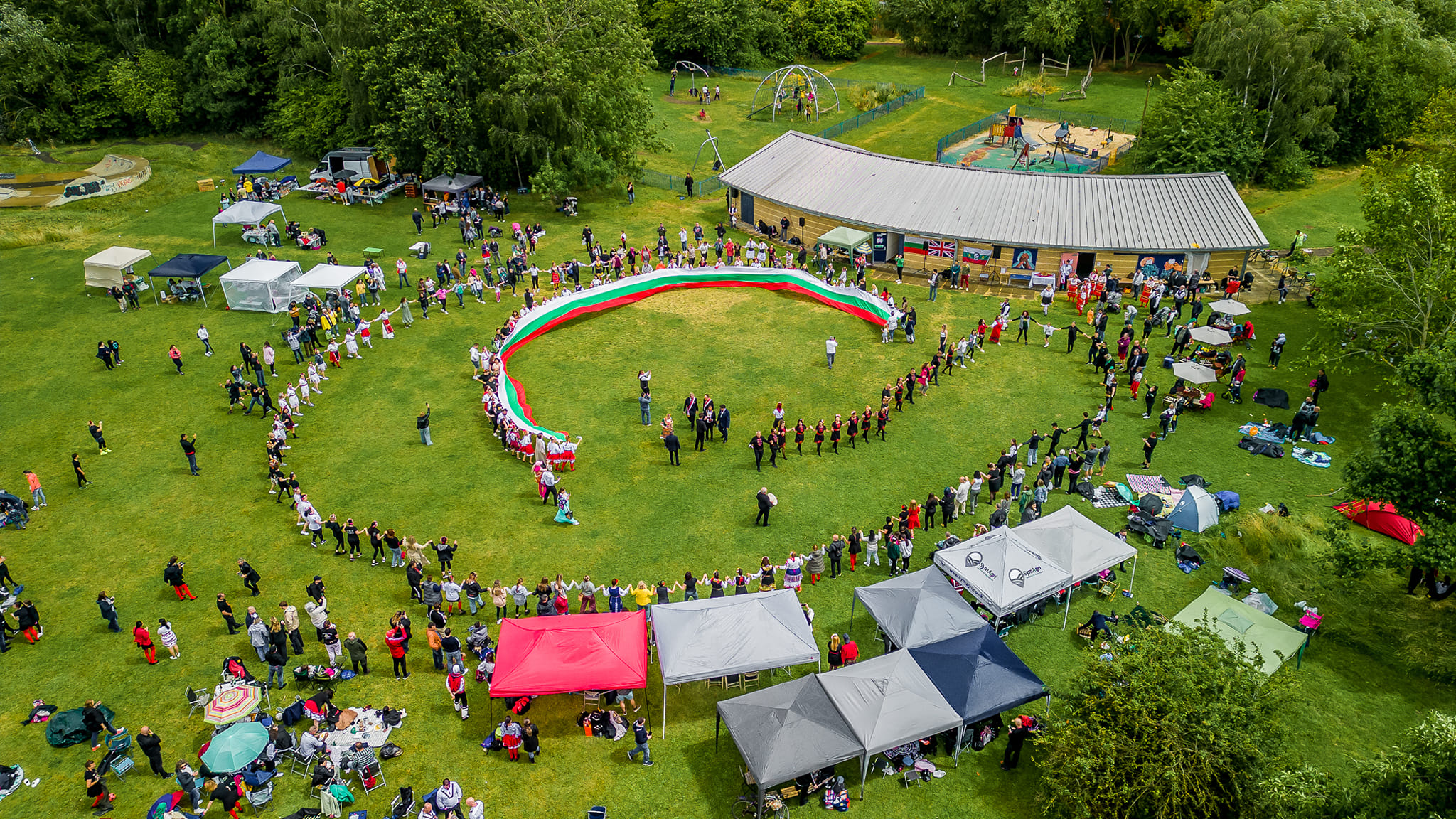 More than 2,000 people filled the green lawns at Nuns Way in Cambridge with smiles, folk costumes, dancing and Bulgarian spirit. Honestly, we didn’t expect it to be this big—or this busy! It was hot, we all caught a tan, and the ice-cream van sold over 900 ice creams! 🌞